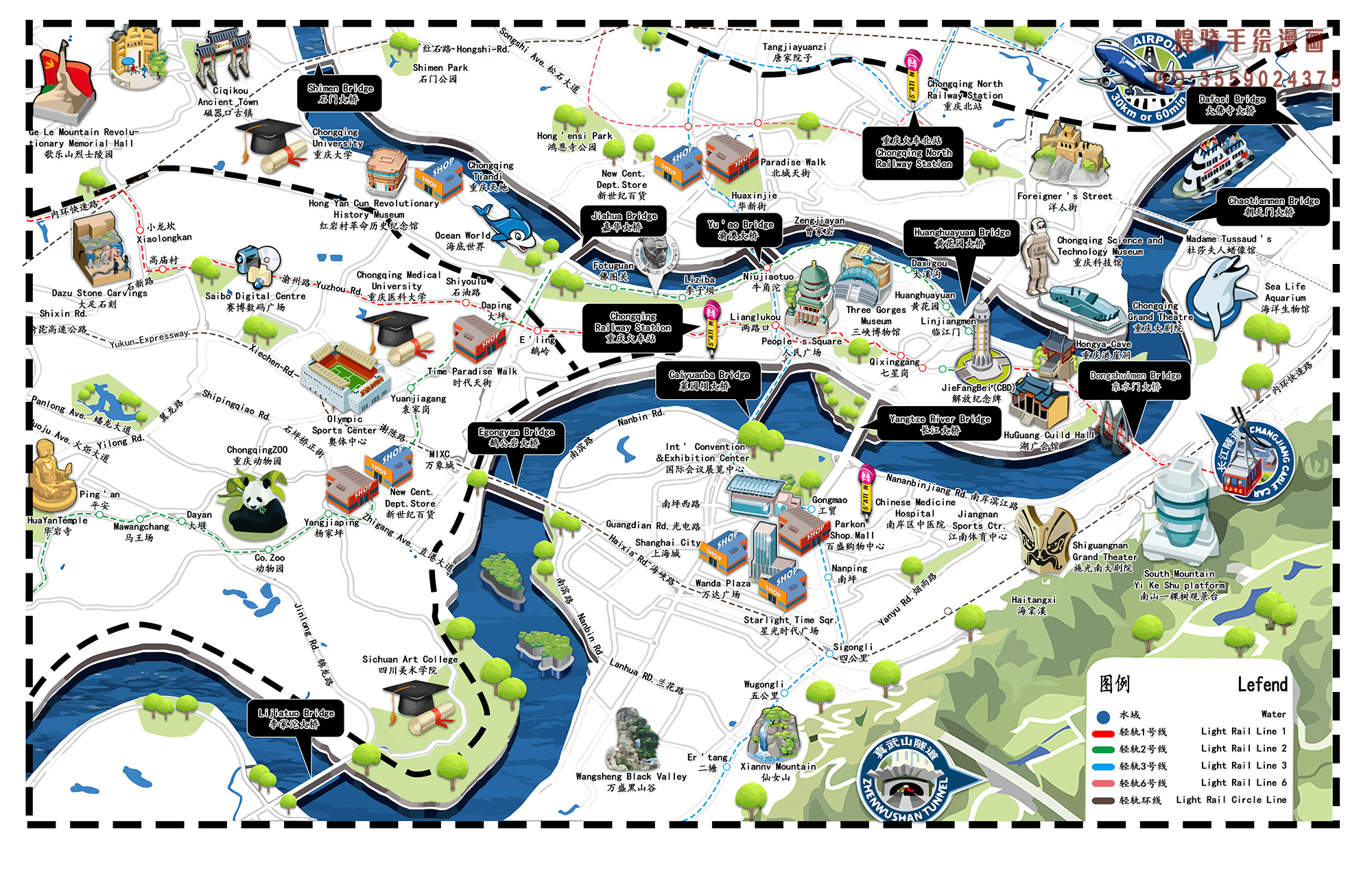 (1)交通:重庆交通便捷,拥有长江水道、高速公路、铁路、航空等多种交通方式。